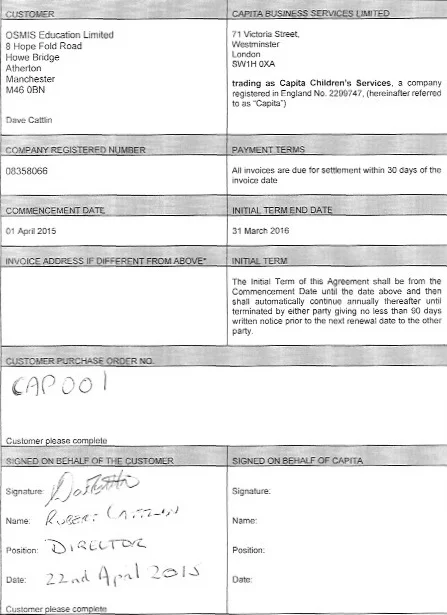 - If it helps you in discussions with Capita colleagues in any way please find below our team charge order form -John had a nicely printed copy with him yesterday but here's my scruffy scan of a scruffy signature - As soon as it's useful to you please call me and I'll send one to your proper e-mail address